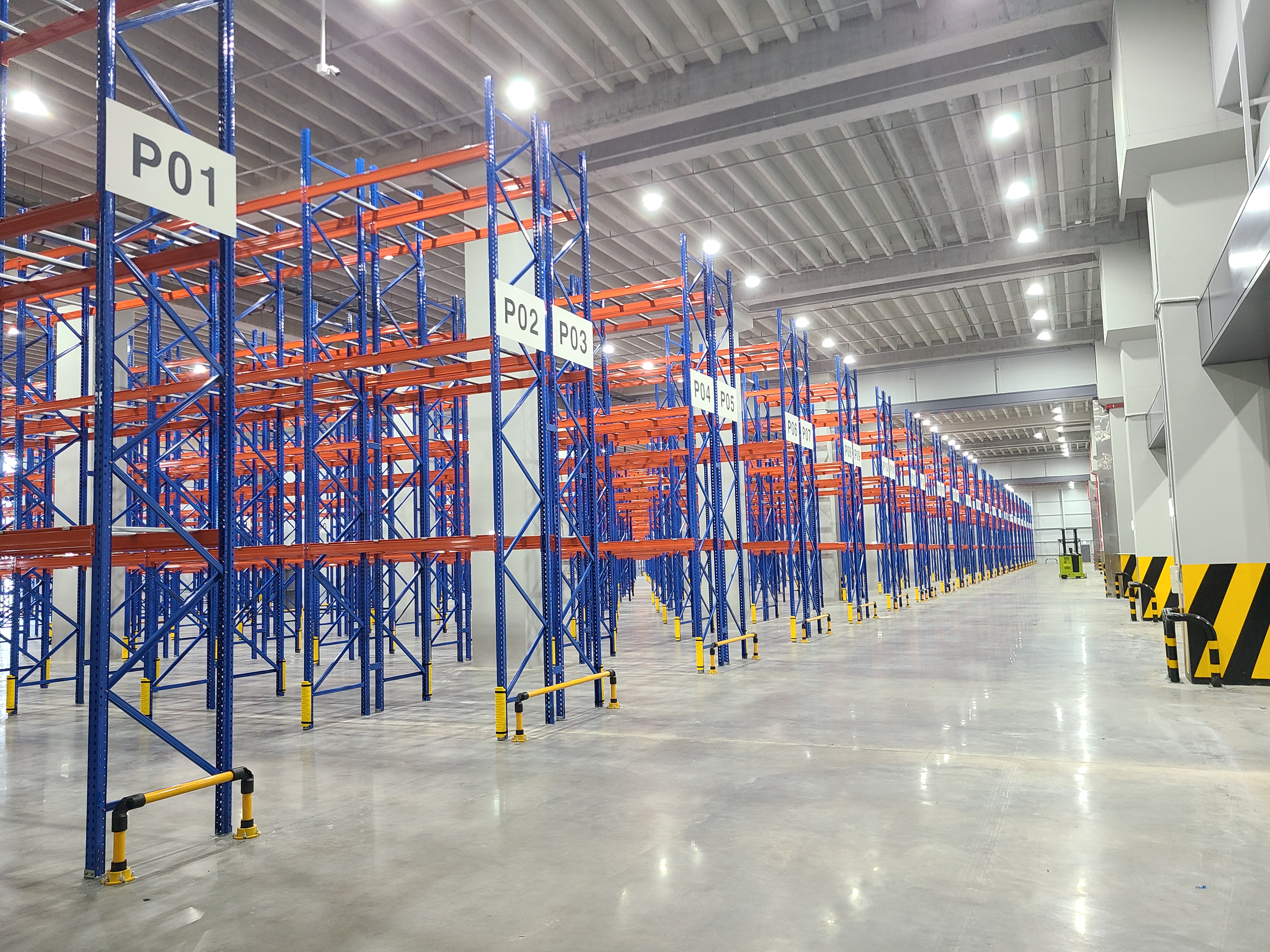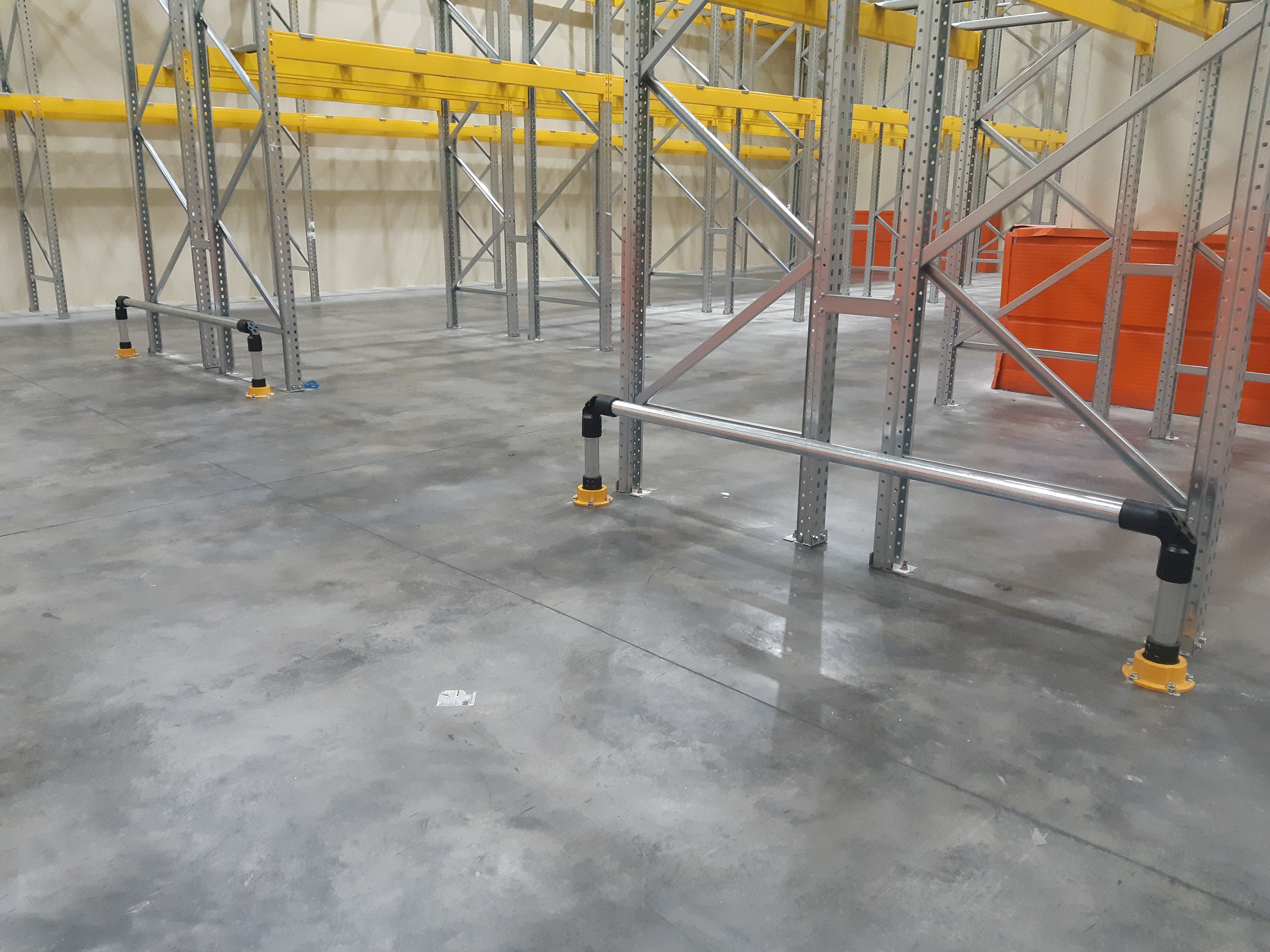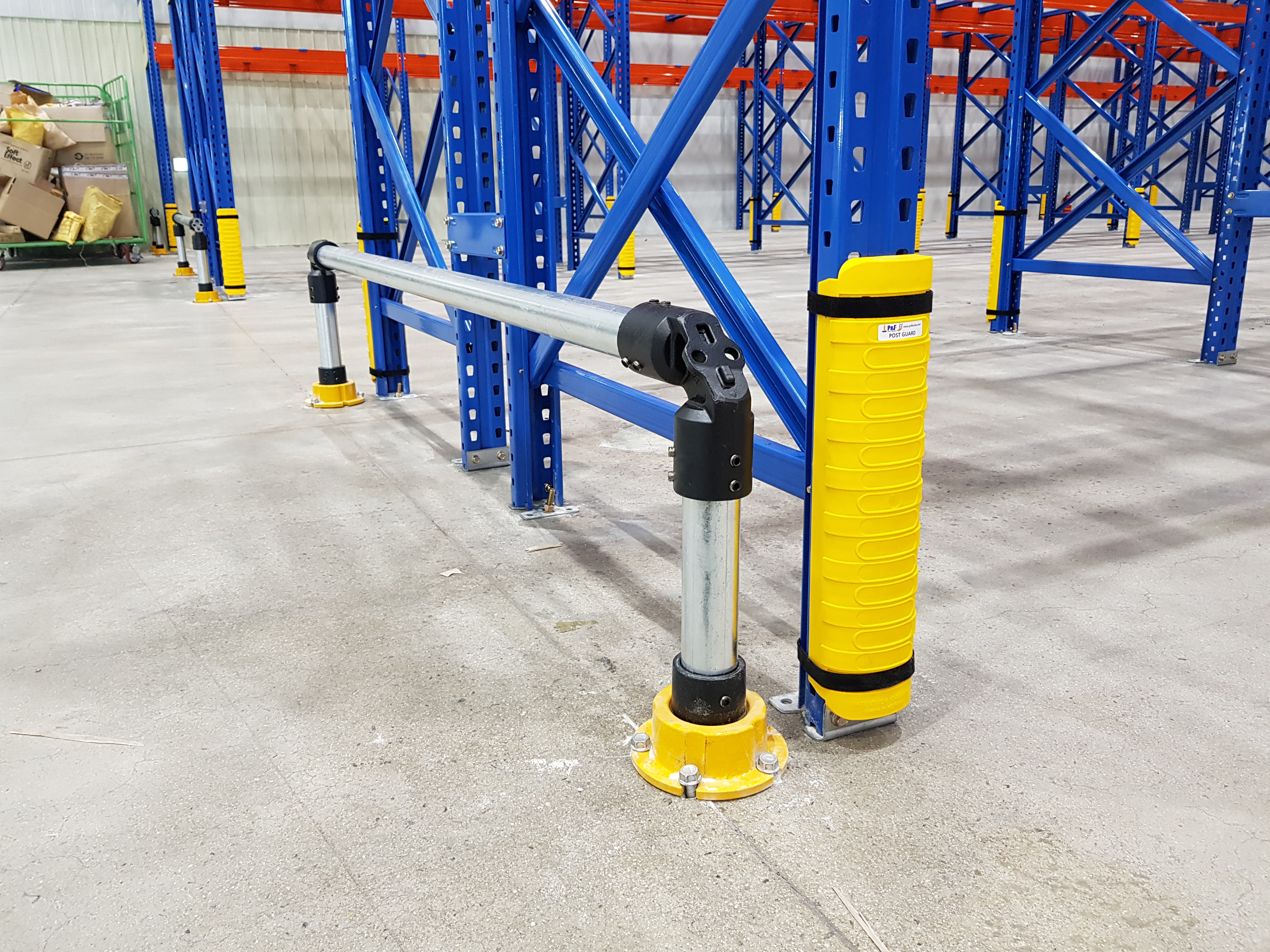 Frame protector is installed at rack end to protect racking system from forklift accident.