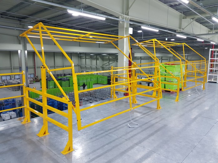 - Ensures worker safety when using mezzanine