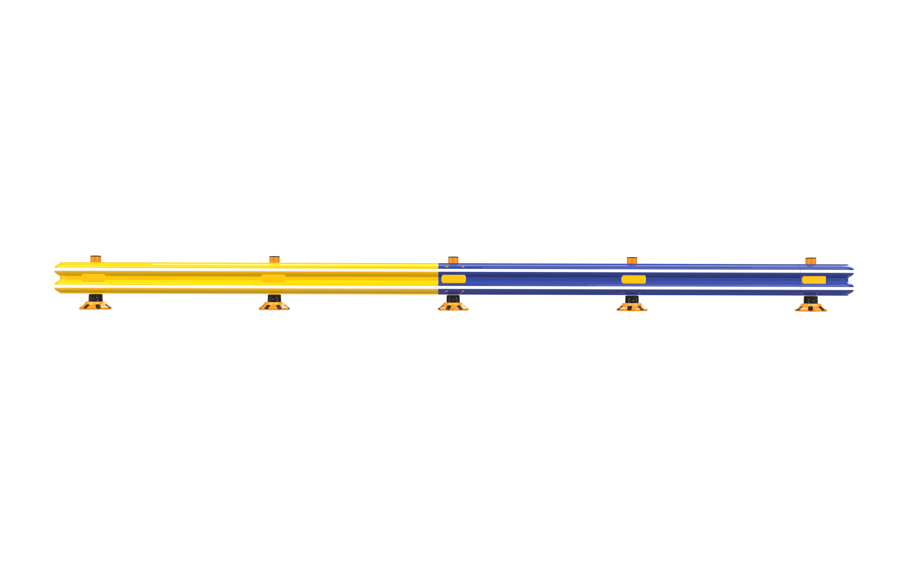 ガードレールは、歩行者通路の確保や作業動線の構築のために設置します。ガードレールはスイングテクターをベースに設計されており、材質はスチールまたはポリマーから選択可能です。