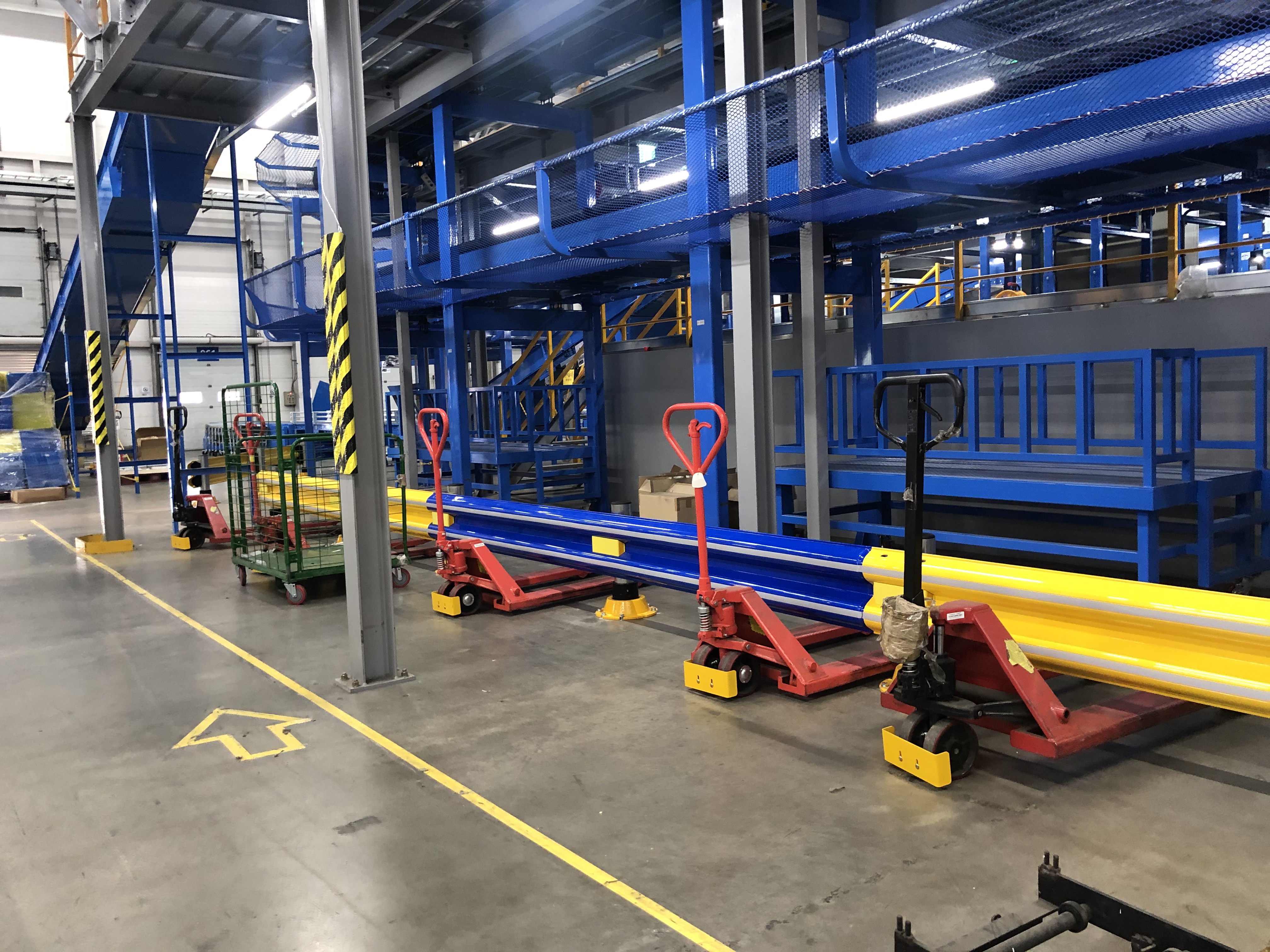 - 作業者と歩行者通路の構築に適しており、青色と黄色のガードレールを採用することで、視認性が高い