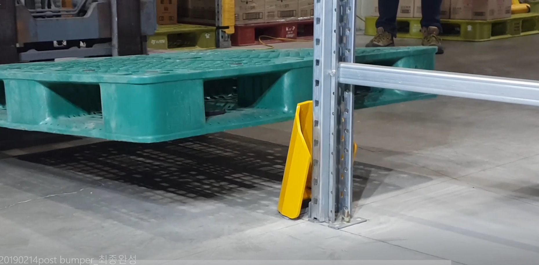 スチール製のラック柱ガードで、スイングテクターの機能を組み合わせたことにより、衝突時には後方へしなり、元の位置へ戻ります。衝突が頻発するラックの出入口への設置に適しています。