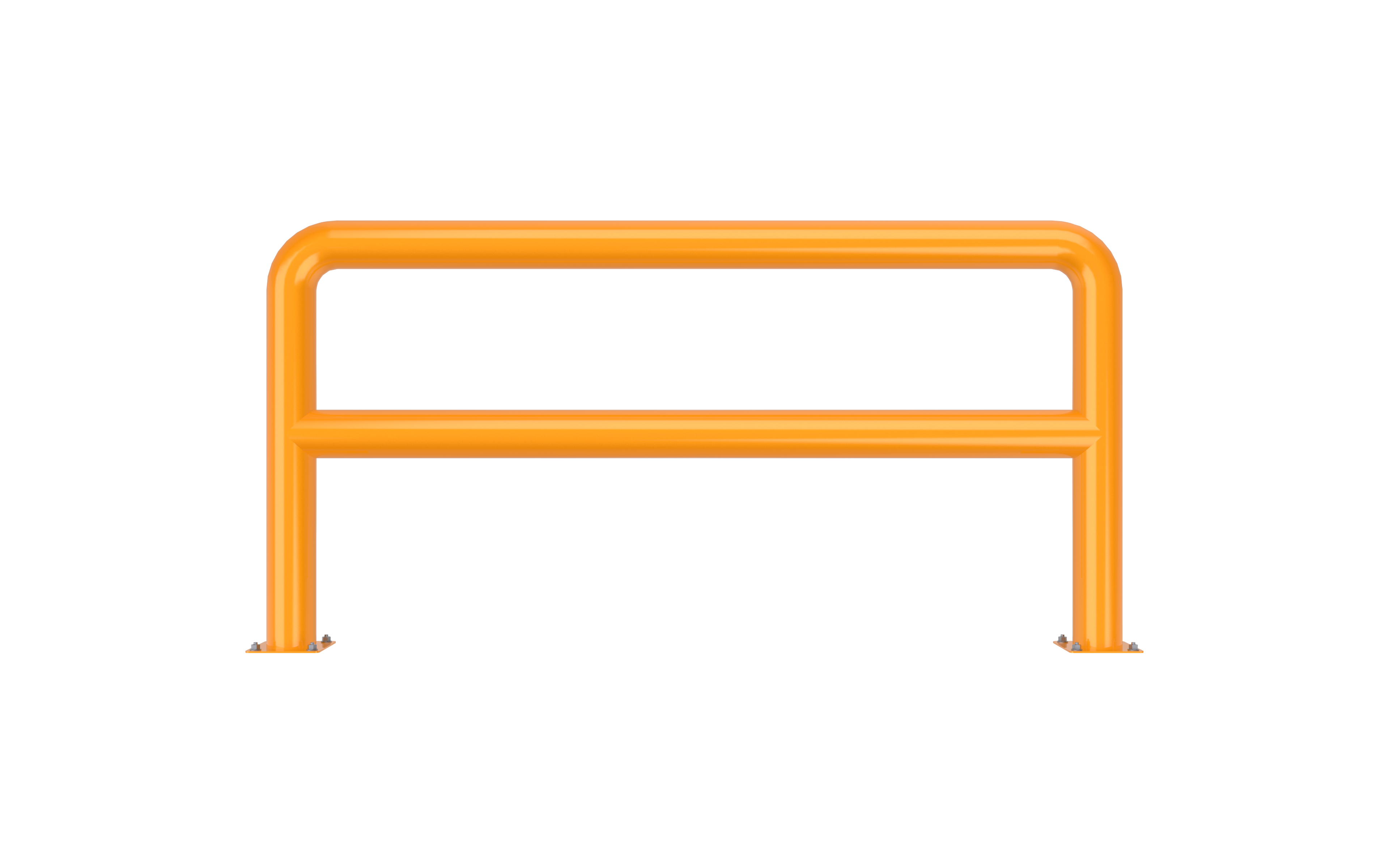 ガードレールの形状は、ボラードと並び最も一般的に使用されているガードで、導入範囲が広いです。主に壁や柱の保護を目的として使用され、1段または2段での製作が可能です。